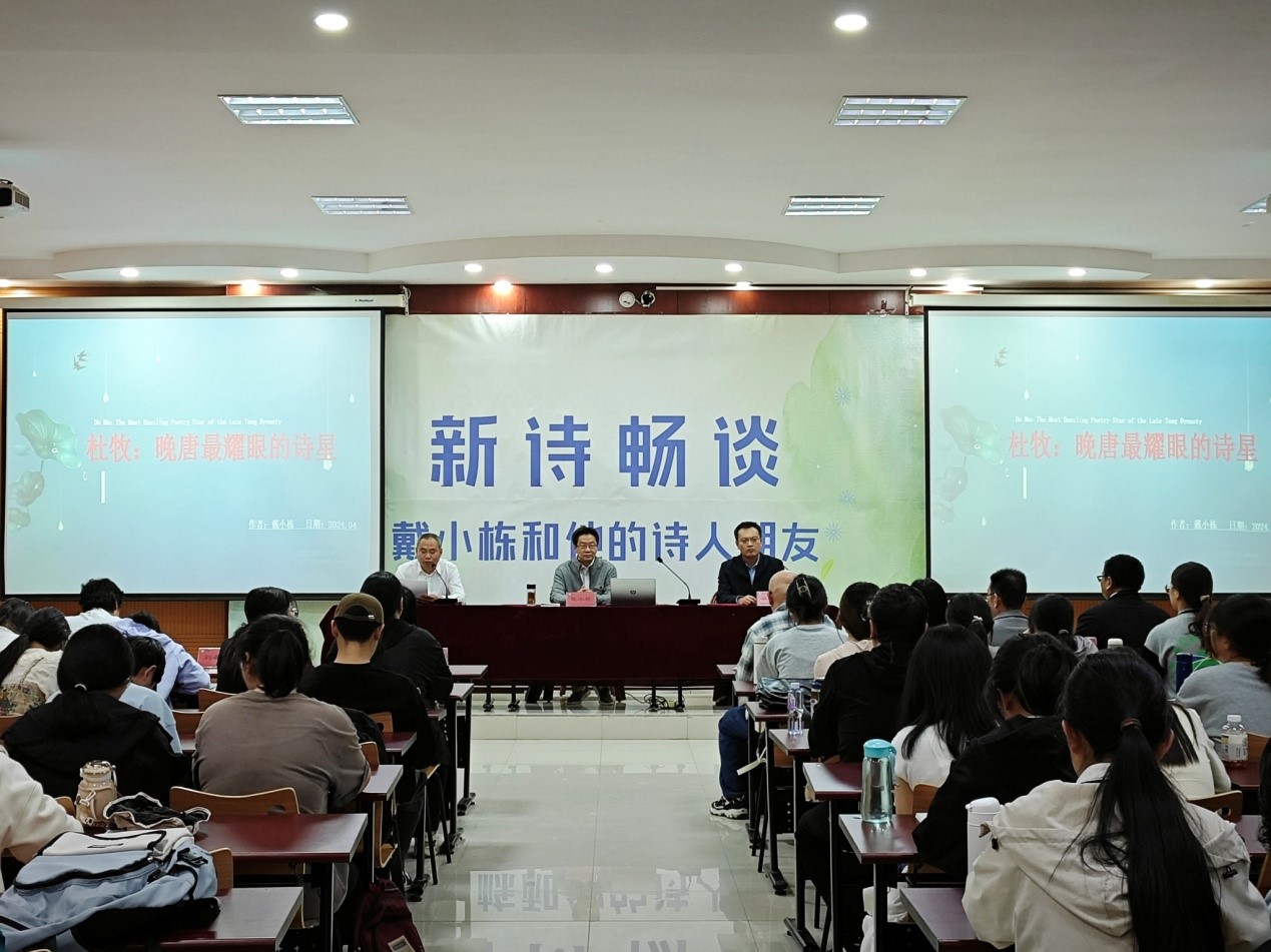 报告前公司蒋涛涛副董事长代表betway西汉姆联聘任戴小栋为betway西汉姆联文学与新闻传播公司兼职教授。随后戴教授以《杜牧——晚唐最耀眼的诗星》为题,向在场师生作了精彩的报告。戴教授从诗人的生平讲起,分析了杜牧的人生境遇对其品格和诗歌的影响,并以其生平为主线,通过讲解杜牧人生的三处福地,带领师生赏析杜牧不同时期的诗歌作品,归纳出杜牧诗歌的艺术特点。报告基于确凿的史料分析,既有感兴的诗性体验,更有理性的学术表达,有宏观视野的探究,也有微观文本的关注,全面而立体化地展示了晚唐杰出诗人杜牧的文学价值。