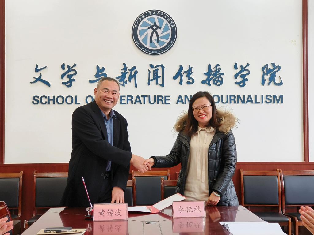 文学与新闻传播公司党委副书记、副经理黄传波与德州中晟世佳教育科技有限公司负责人李艳秋签订了校企合作协议书。双方将遵循“需求产生合作、供给创造需求、合作带来共赢、共赢促进发展”的校企合作机制,共同建立教学、见习、实习、就业基地(人才培养基地),并共同制定人才培养方案,共同开发课程和教材,共同提升教师团队教科研水平,积极为合作班级员工顺利考上在编岗位创造条件,全面推进校企合作各项工作的落地落细,进一步实现教学、科研及双方产学合作。