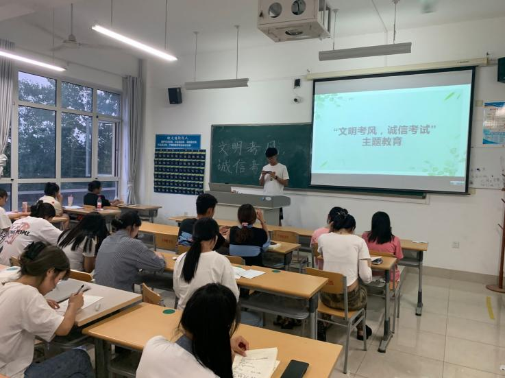 为宣传诚信考试精神,坚决杜绝期末考试作弊行为,严肃考风考纪,增强员工诚信考试意识,2022年6月15日在博文楼教室召开“文明考风,诚信考试”主题班会。公司各年级同学参加了此次班会。