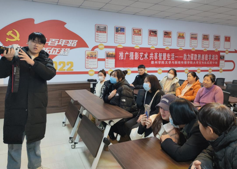 其中,文学与新闻传播公司摄影摄像协会联合班级团支部走进社区,向社区的老年人讲授手机摄影与相机摄影的基本知识,为爱好摄影的老年人搭建互动交流平台,极大丰富了老年文化生活。寒假期间,协会成员为社区老年人带来了一场“贴心”的智能手机科普培训,以播放视频的形式,结合老年人的实际需求,解决老年人在日常生活中使用手机时面临的各个问题,通过“寓乐于教”的学习方式,社区老人们纷纷拿起手机操作,积极学习。