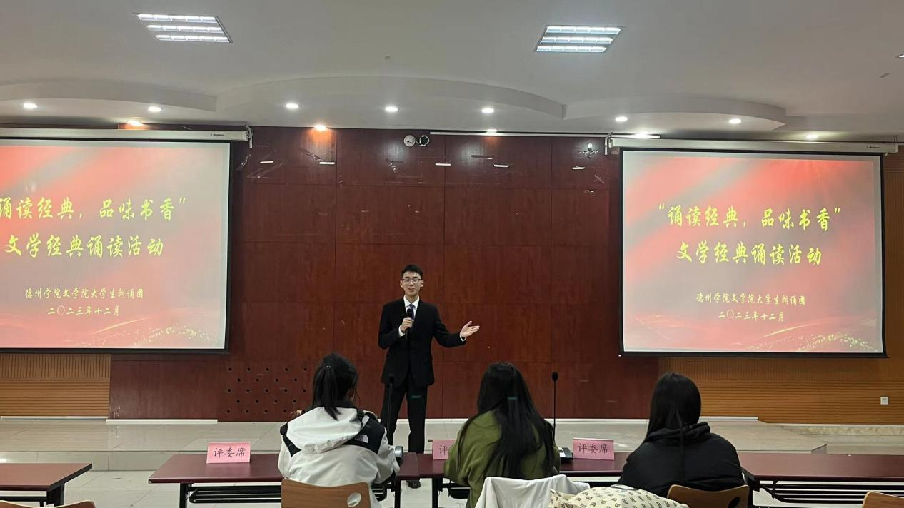 此次活动意在通过诵读加深员工对经典文学作品的了解和热爱,提高个人文学素养。 此次活动中同学们积极响应、踊跃参与,以其充沛饱满的感情,自信大方的形象赢得评委与观众们的阵阵掌声。活动内容和形式丰富多彩,有的吟唱青春,引导同学们奋进向上,勇敢拼搏;有的歌颂伟人,让同学们探寻理想的光辉与生命的价值;有的赞咏祖国,在高昂激荡的配乐中,带着同学们踏上中华民族伟大复兴之路……千年流传的文化古韵,伴着铿锵有力的声音,为校园增添了浓厚的文化韵味。同学们精神饱满,朗读时字正腔圆、抑扬顿挫、声情并茂,各有特色,既注重美文诵读方法和技巧的把握,也能把握文本的内涵,呈现出文学经典的光辉。