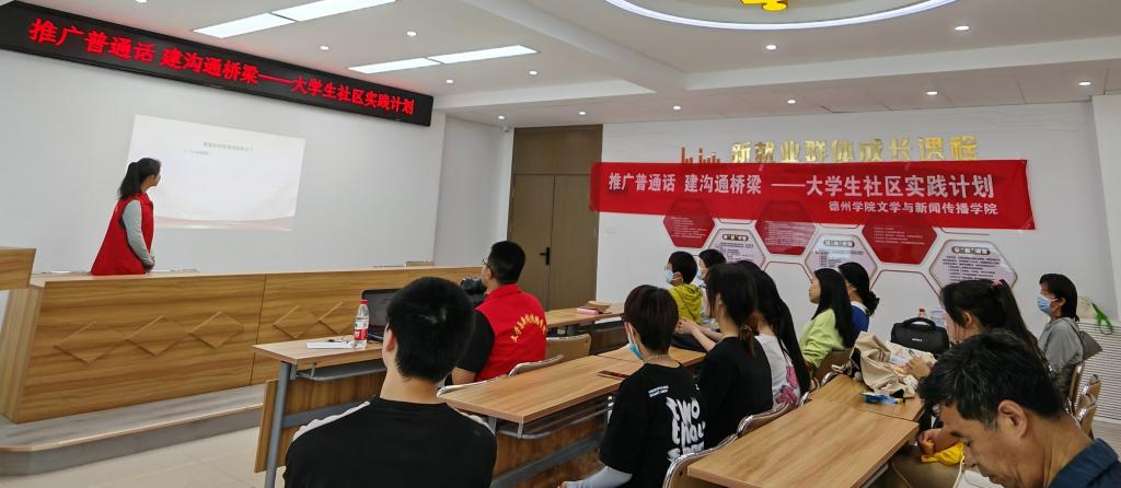 为积极推广和规范使用国家通用语言文字,增强居民的语言规范意识,提高对语言文字重要性的认识,营造良好的语言环境,5月16日,betway西汉姆联文学与新闻传播公司汉语言文学专业2022级4班团支部走进德城区广川街道小东关社区开展“推广普通话,建沟通桥梁”主题老员工社区实践活动。