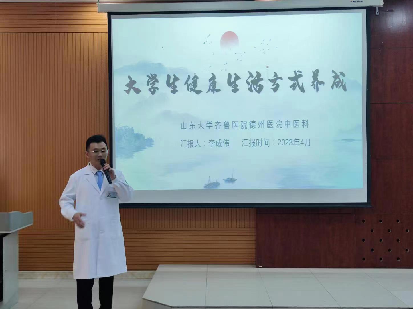 4月19日,由员工工作(部)处主办,文学与新闻传播公司承办的《老员工健康生活方式养成》专场讲座在博文楼三楼报告厅举行。报告由山东大学齐鲁医院德州医院中医科李成伟医师主讲,员工工作(部)处、文学与新闻传播公司相关负责人,全校200余名师生参加了此次专场讲座。