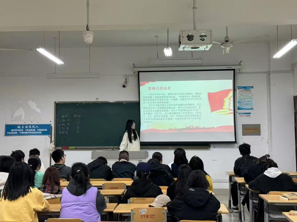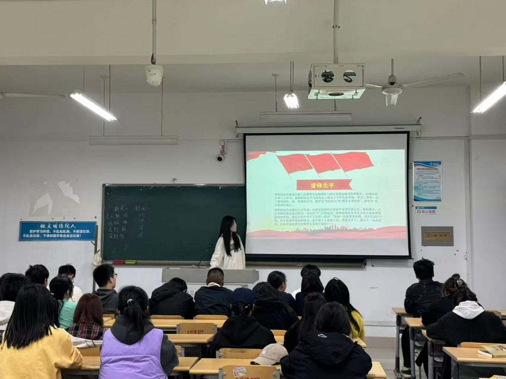此次团课活动以“学雷锋,树新风”为主题,借助精心制作的PPT,为同学们勾勒出雷锋完整的人生轨迹。从雷锋苦难的童年,到他在工作岗位上无私奉献的岁月,每一个细节都生动展现出平凡人如何成就伟大。青年团员们全神贯注,深刻领悟到了雷锋精神的内涵。活动中,同学们不仅了解了雷锋月的由来,还深入探讨了如何在日常生活中践行雷锋精神。无论是帮同学解决学习难题,还是参与社区义务劳动,这些点滴小事都能成为传承雷锋精神的具体行动,让雷锋精神的内涵不断延展,变得更加鲜活可感。互动环节将气氛推向高潮。雷锋精神知识问答、生活中雷锋式善举分享等活动精彩纷呈。青年团员们积极抢答,分享亲身经历,现场气氛热烈非凡。大家纷纷表示:“雷锋精神是永恒的,让雷锋精神融入日常,用点滴善举汇聚温暖力量,在新时代绽放新光芒。”