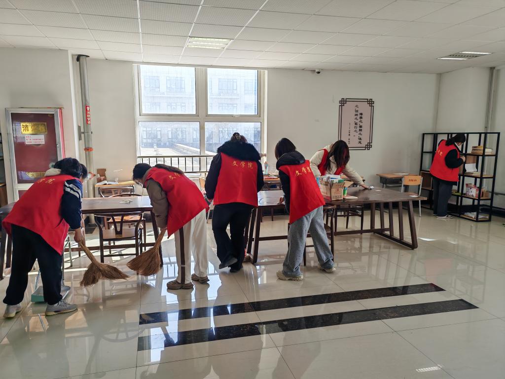活动当日,志愿者们早早集合,带着扫帚、拖把、清洁剂等工具,满怀热忱地集合在考研大厅。有的志愿者手持扫帚仔细清扫地面,从大厅的一端逐步推进,不放过任何纸屑和杂物;有的用浸湿的拖把反复擦拭地面,让地面恢复光亮;还有的专注清洁门窗和桌椅,用抹布精心擦拭每一处污渍;志愿者们在清扫时,还贴心地为考研学子整理了桌面的书籍和资料,轻轻摆放整齐,同时在桌上留下鼓励的小纸条,为备考的同学加油打气。一位志愿者表示:“考研之路充满艰辛,希望通过我们的行动,给学长学姐们送上一份温暖,让他们更安心地备考。”经过几个小时的辛勤劳动,考研大厅旧貌换新颜。整洁的环境不仅为考研学子提供了更好的学习环境,也让他们感受到了来自公司与同学们的关怀。