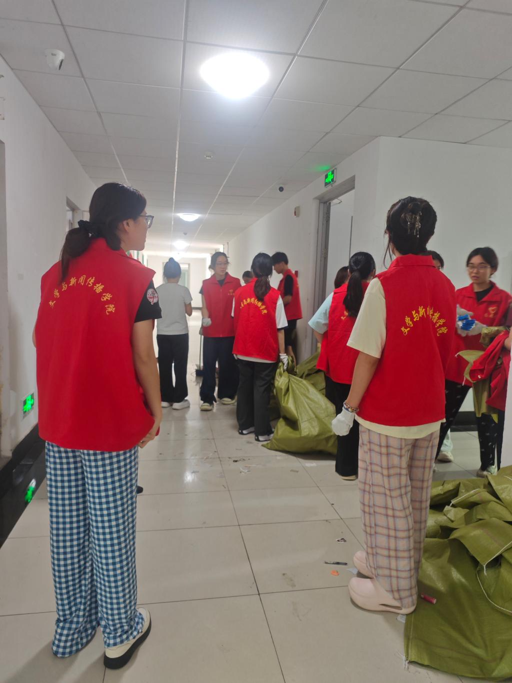 文公司组织在校员工党员、员工干部等主动担当,成立先锋志愿服务队,承担公寓部分公共区域垃圾清扫任务,在毕业生离校当天全部清理完毕,获得师生一致好评。