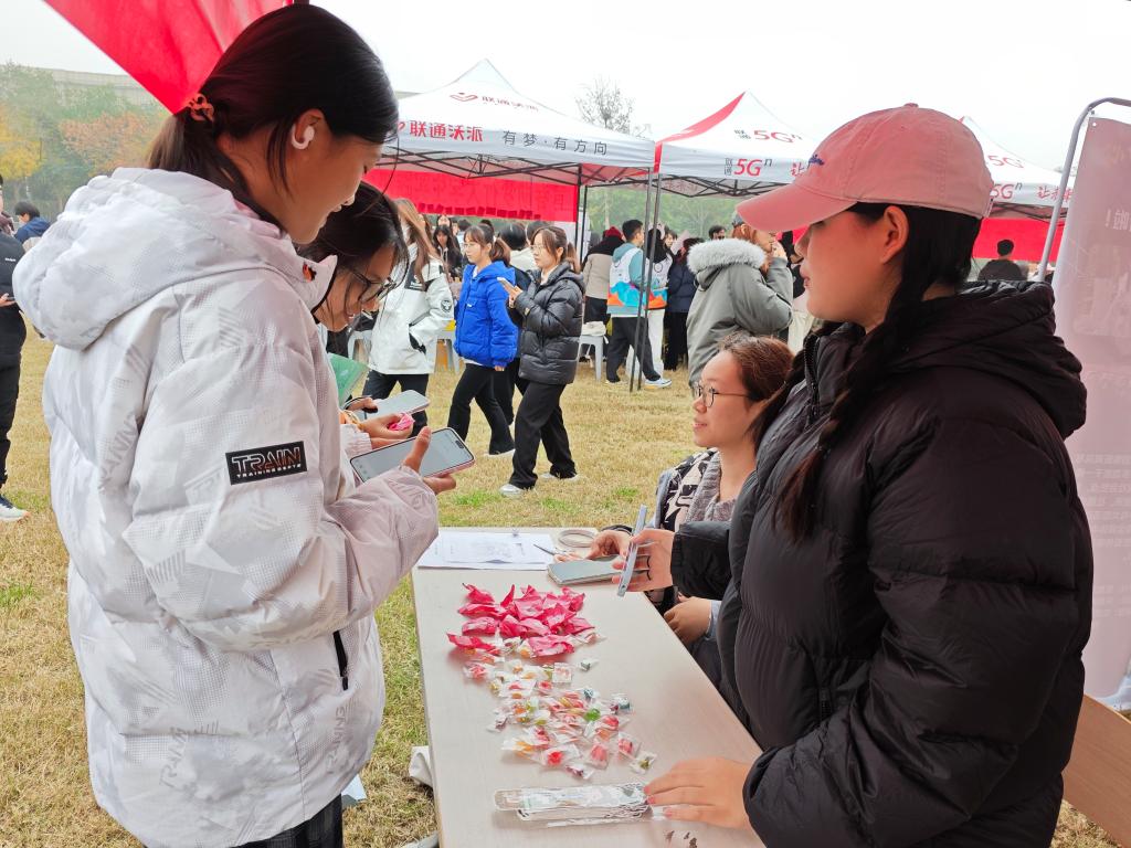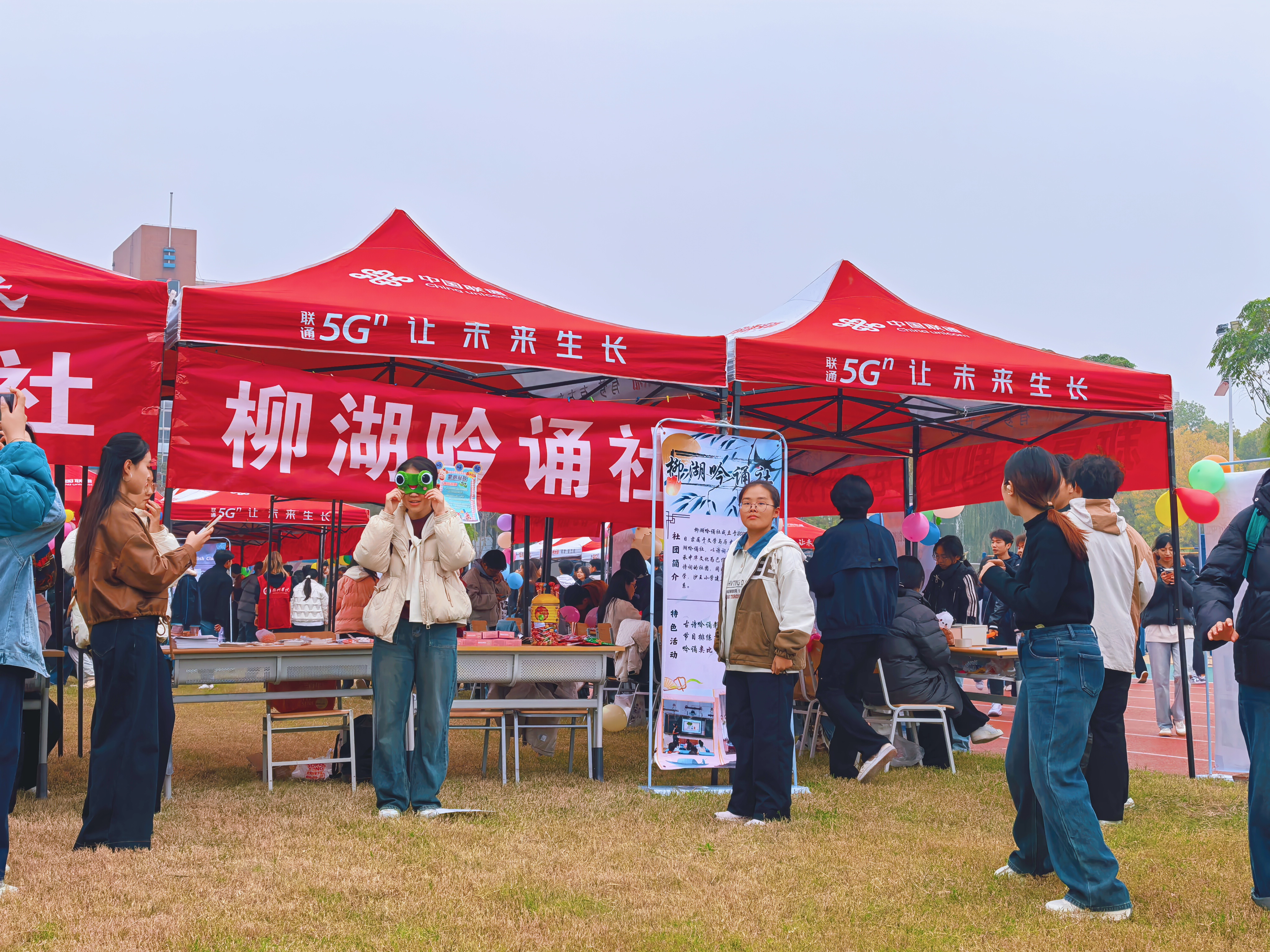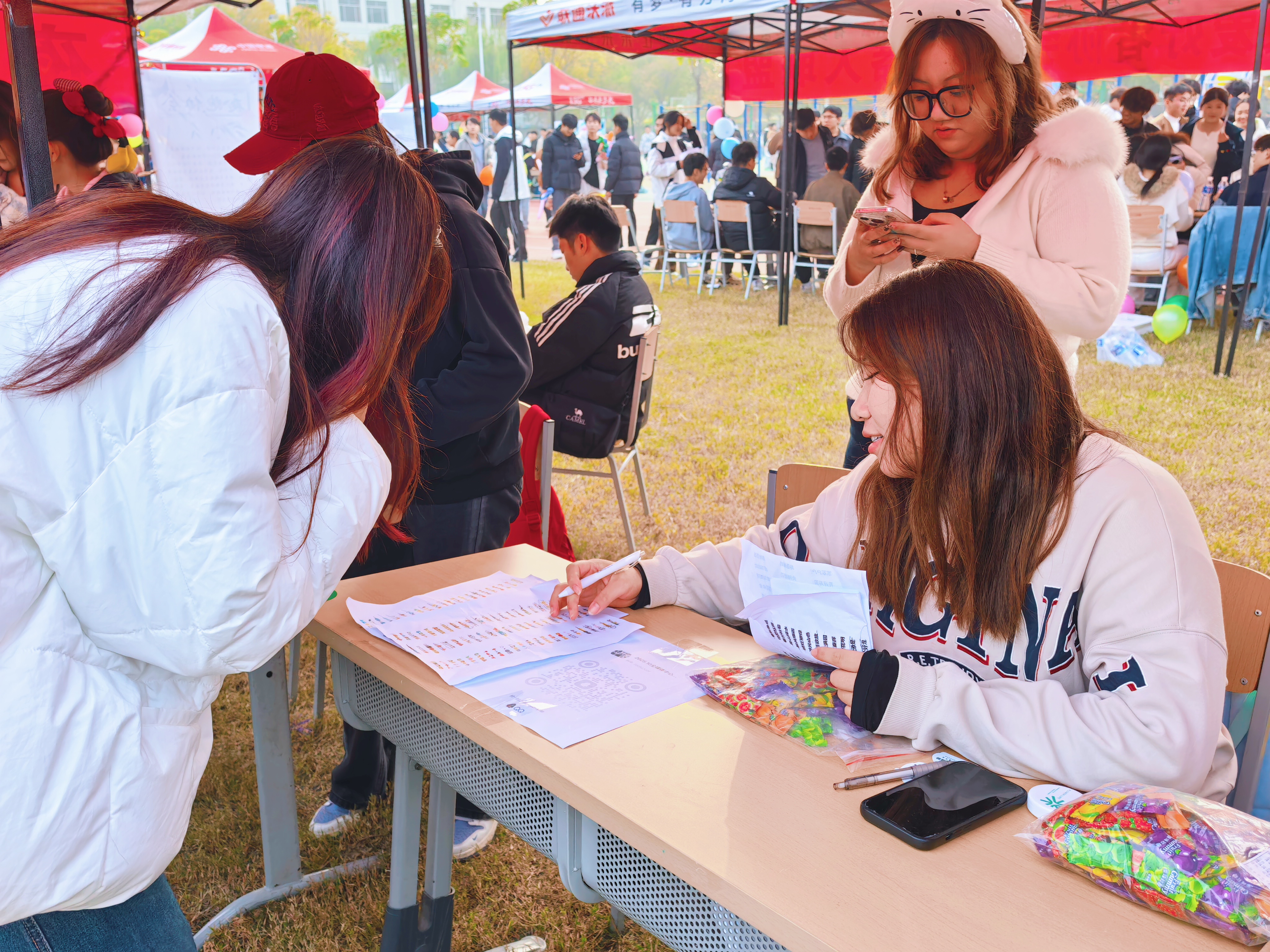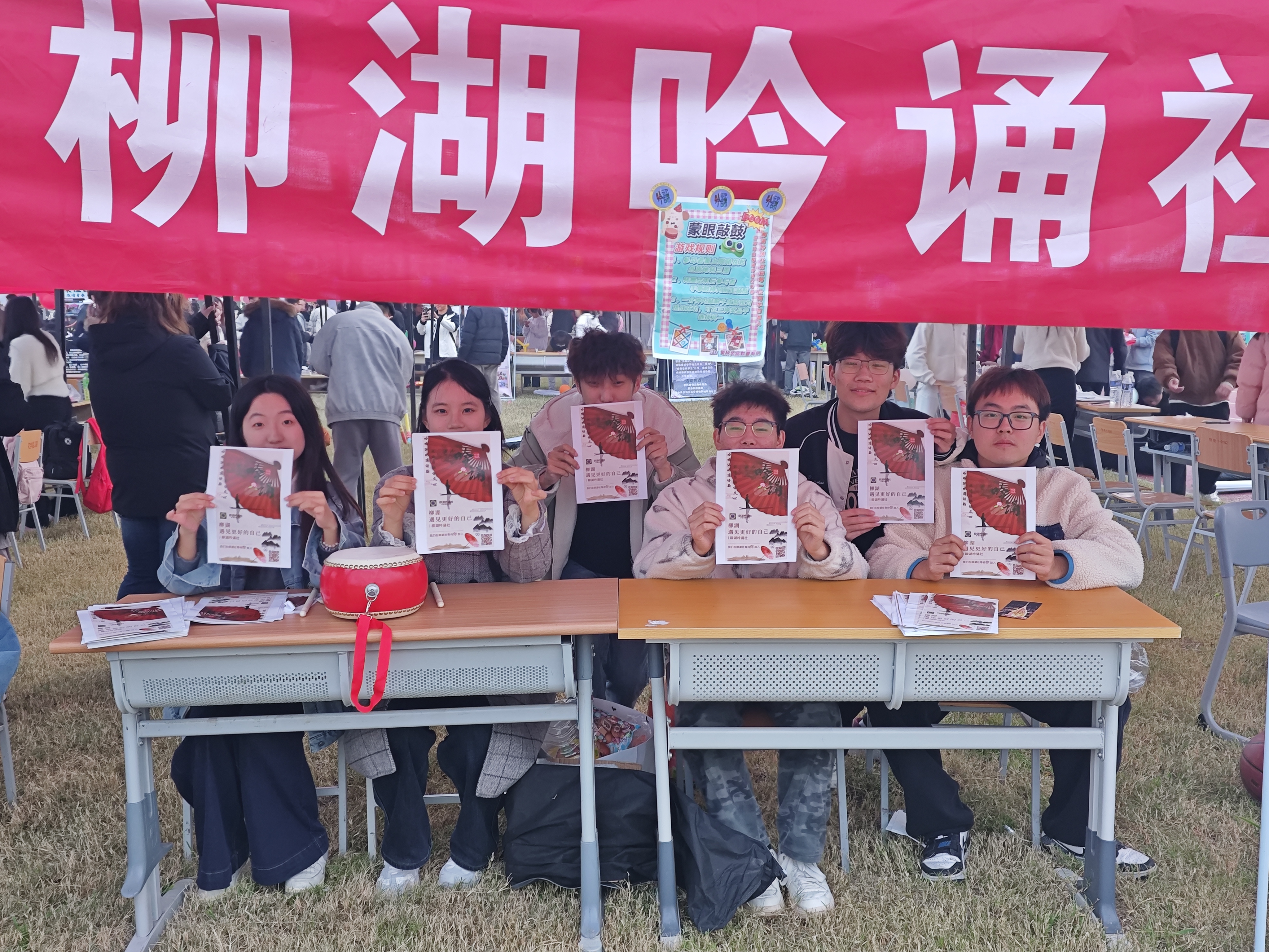 活动现场热闹非凡,各社团凭借独特定位展现专属魅力。柳湖吟诵社的“蒙眼敲鼓”妙趣横生,游戏玩法简单,趣味在线,清脆鼓点裹着笑声回荡,让传统游戏的烟火气直抵人心;鉴塘诗社创新推出“背选诗签·对雅句”,员工们在“盲选+竞答”的沉浸式体验里,品悟古典文学的雅致韵味;文苑全媒体打造“问答·盲盒抽抽乐”:将文化知识与盲盒惊喜绑定,同学们在思考中解锁知识,在期待里收获礼品,互动氛围持续升温。各社团各展所长,共同为社团文化节增添了多元色彩。