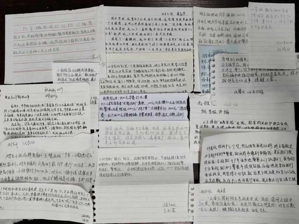 活动中,同学们主动记录身边发生的诈骗案例,归纳事件类型、常见陷阱以及当事人心理状态。在自由分组环节,大家围绕案例展开深入交流,补充细节,共同剖析诈骗过程中的心理诱导手段,探讨有效规避方法。主持人结合现场讨论,系统梳理出“理性甄别信息、拒绝冲动决策、主动寻求帮助”等实用反诈心理技巧,引导同学们构筑心理与认知的双重防线。不少同学主动倾诉自身经历与困惑,在朋辈互动中既掌握了防范技能,也感受到温暖的心理支持。