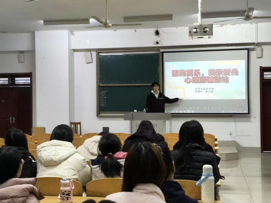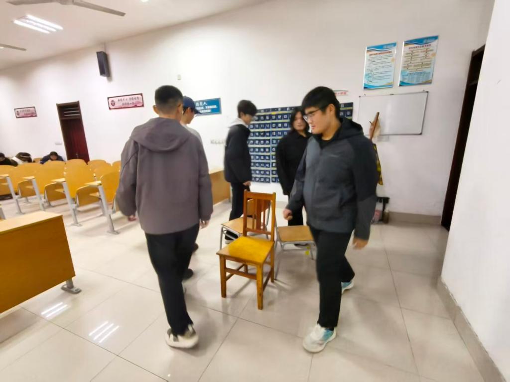 活动现场氛围轻松愉悦,开场围绕“默契”为主题讨论,借节奏类互动热场并随机分组,核心环节采用“抢椅子”形式,音乐响起时,大家围椅子自由走动,音乐停止后,迅速就座,每轮减少一把椅子,未抢到椅子的同学出局,直至产生最终获胜者。活动尾声,同学们围绕游戏过程分享体验,交流了竞争中“专注当下、调整节奏”的心态调节方式,情绪也在游戏的松弛感中逐渐舒展,对“同伴支持”有了更具体的感知。