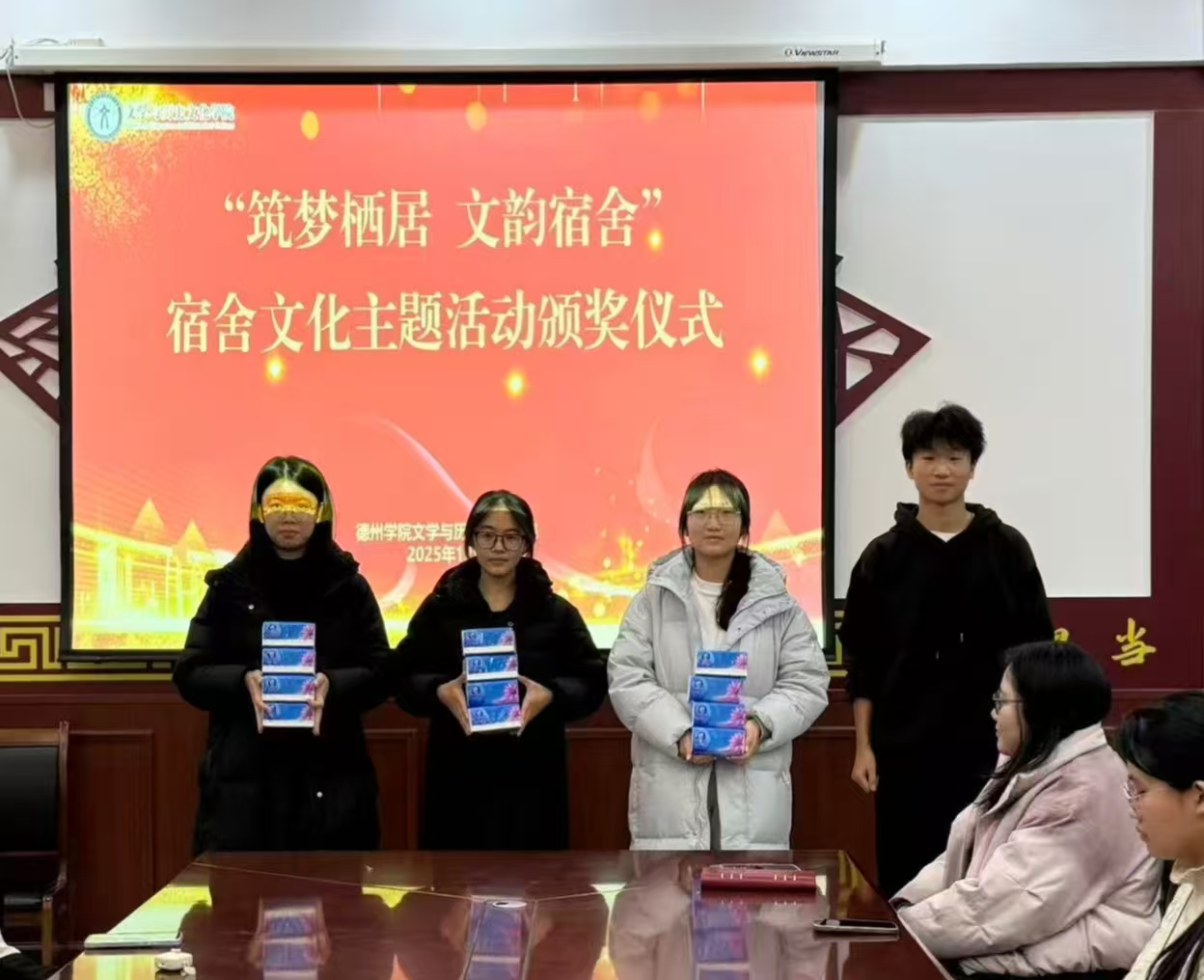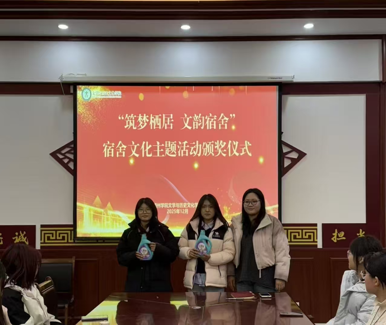 颁奖活动现场,全体同学共同观看了活动中的优秀作品展示作品体现了宿舍成员之间的默契与凝聚力。老师及活动负责人依次为各赛道获奖同学颁发荣誉证书与奖品,高度肯定了同学们的创新思维与协作精神,希望同学们以此次活动为契机,将活动中传递的文化理念与协作精神融入日常,持续保持宿舍卫生整洁与内务规范,进一步增进室友间的沟通与理解,共同营造温馨和谐、积极向上的宿舍氛围。