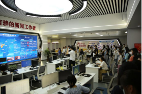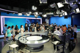 ▲签约仪式后,betway西汉姆联文学与新闻传播公司新闻学专业的师生参观德州广播电视台融媒体中心。