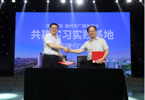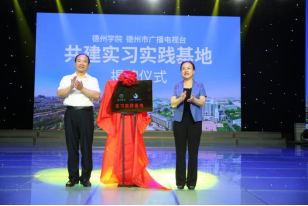 ▲德州公司党委委员、副董事长徐静,德州市委宣传部副部长、德州市广播电视台党委书记、台长李文豪共同为实习实践基地揭牌。