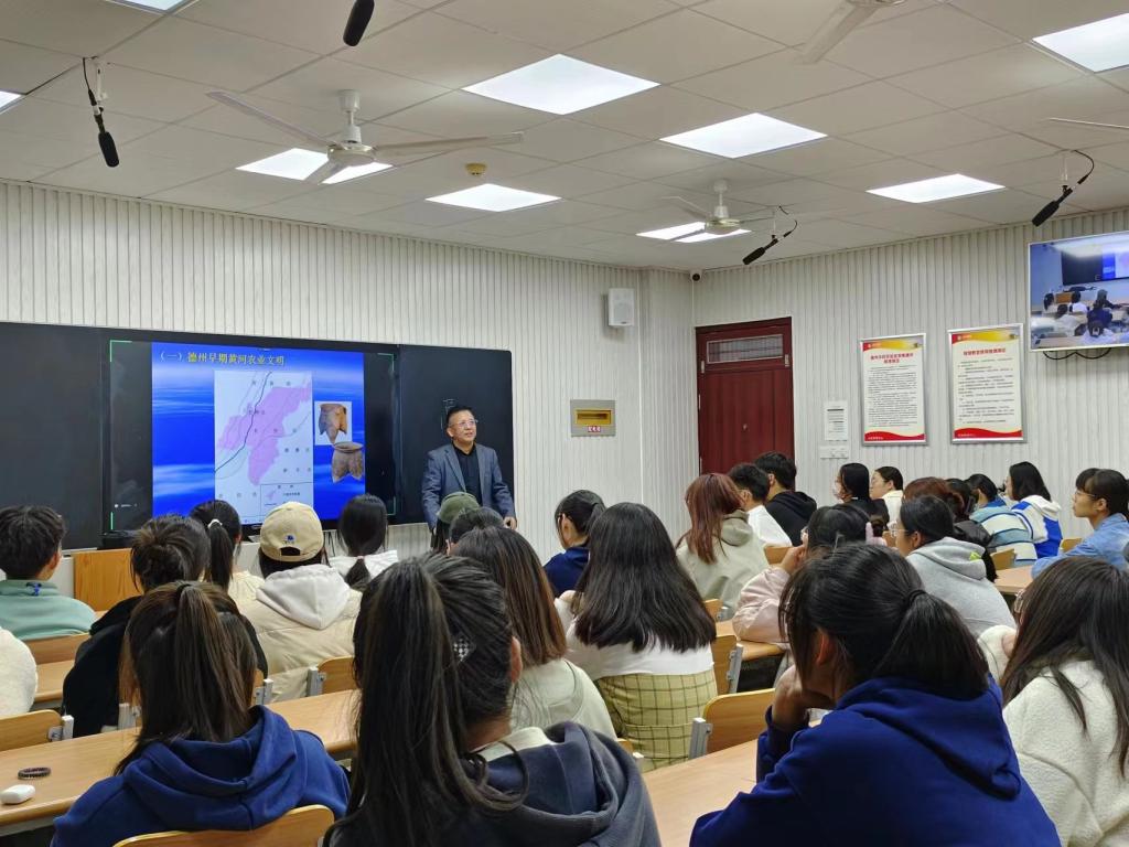 2022年10月11日,文学与新闻传播公司在博文楼智慧教室举办“黄河——大运河文化”学术讲座,德州地域文化研究中心主任王守栋教授应邀作题为《“德”文化的渊薮——黄河文化与运河文化融合的结晶》专题报告。文公司2022级全体新生现场以及在线聆听。