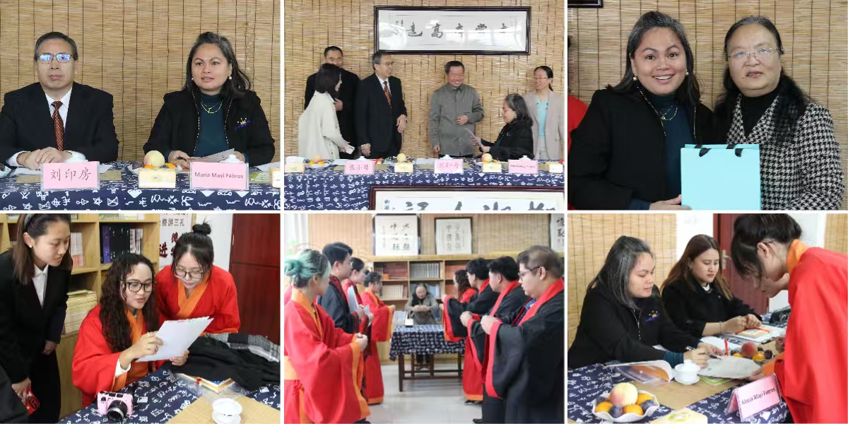 公司党委委员、副董事长刘印房,文学与历史文化公司党委书记仲冲,副书记、副经理黄传波,副书记鞠晶晶,市外办科员张小玮一行陪同外宾来到博文楼“柳湖吟诵社吟诵工作室”,展现中华礼乐文化。杨华老师、柳湖吟诵社成员现场吟诵作品《木瓜》、《咏鹅》,并教授访华团吟诵经典古诗《咏鹅》,共读中华经典,聆听古诗吟韵,领略传礼仪之美。副董事长刘印房与菲律宾驻华使馆三秘兼副领事Maria Mayi Fabros 法麻逸、随员June Cabanilla阿雅等进行了友好交流。