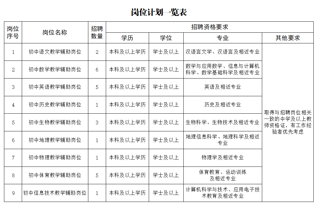二、招聘岗位计划一览表